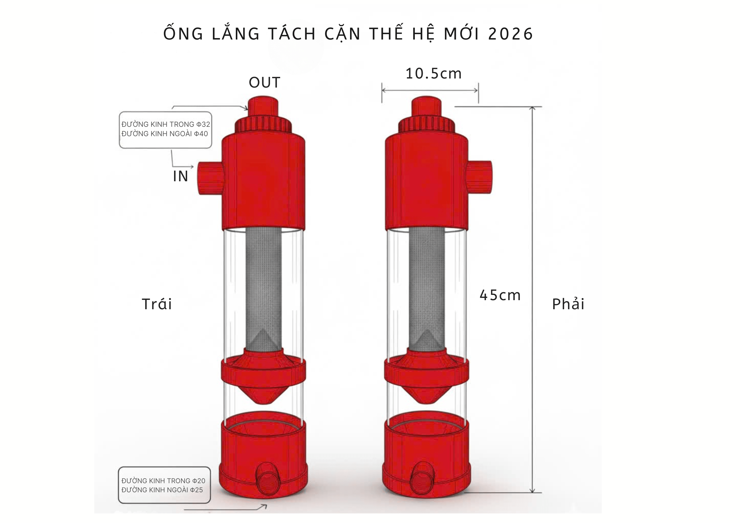 Trong hệ thống lọc hồ cá hiện đại, việc loại bỏ chất thải rắn như phân cá và cặn bẩn ngay từ đầu vào là yếu tố then chốt để giữ cho nước luôn sạch, trong và ổn định. Ống lọc tách phân thế hệ mới, hay còn gọi là ống lắng công nghệ mới, ra đời nhằm tối ưu hiệu quả lọc cơ học mà không cần sử dụng đến các vật liệu lọc truyền thống như bông, túi lọc hay chổi lọc.